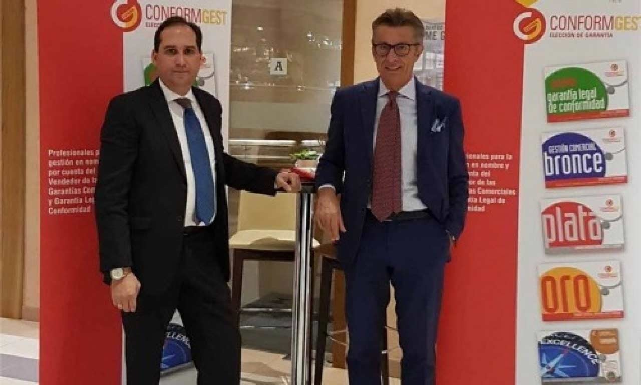 El presidente Diego Pinzano y el Director Comercial Francisco Martinez de ConformGest durante la Asamblea de los Concesionarios Fiat en Madrid.